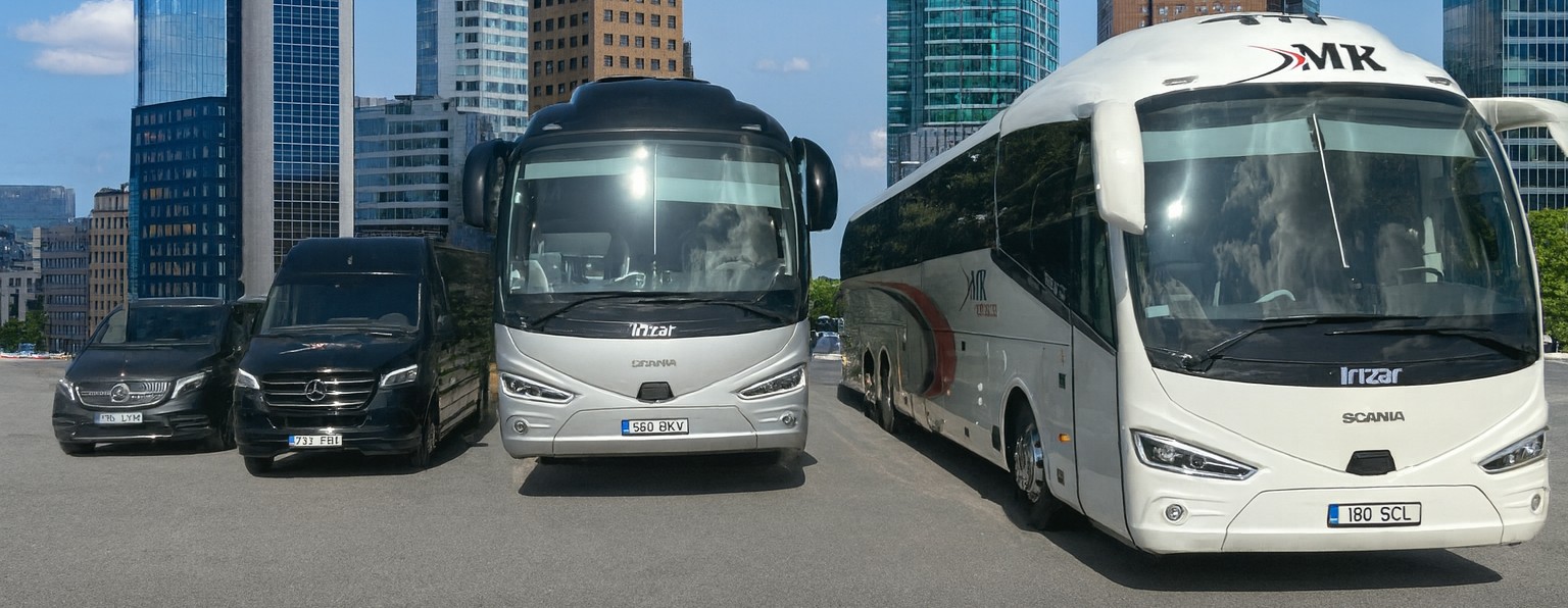 Meie valikus on bussid alates 6-kohalistest väikebussidest kuni 60 reisijat mahutavate ruumikate turismibussideni. Kõik sõidukid on kaasaegsed, töökindlad ja alati säravpuhtad. Bussides ootab reisijaid mugav ja turvaline keskkond: pehmed istmed, kliimaseade, WiFi, turvavööd ning lisavarustus, mis muudab nii lühikesed kui ka pikemad sõidud meeldivaks